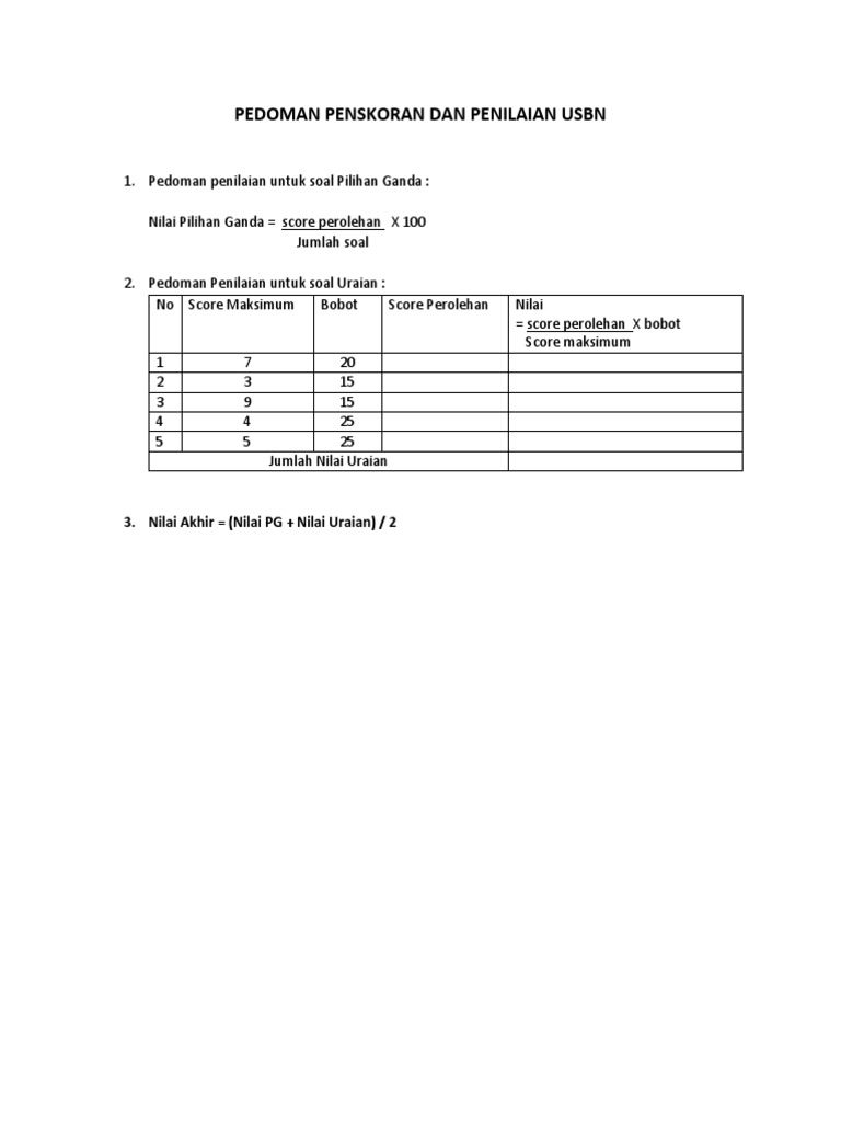 Pedoman penskoran a petunjuk penilaian soal pilihan ganda nomor soal bobot soal 1 20 5 jum daily routine chart for kids student survey daily routine chart. Pilihan jawaban sebanyak 5 buah. 40 pilihan ganda dan 5 soal uraian perbandingan bobot : Pedoman penskoran soal pilihan ganda dan uraian soal usbn : Soal tes pilihan ganda dibuat dengan satu pertanyaan dan dengan beberapa opsi jawaban.