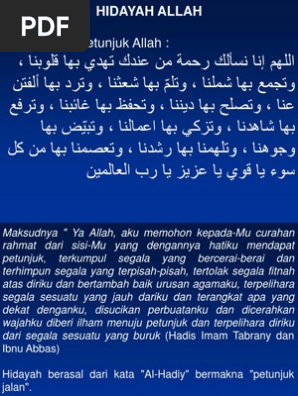 More images for doa agar suami diberi hidayah allah » Maksudnya kita meminta kepada allah agar diberi taufik senantiasa berada dalam kebenaran untuk setiap perkara. See full list on rumaysho.com Jun 10, 2017 · doa agar suami nurut perkataan istri yang pertama ini sebetulnya adalah doa yang bisa dipanjatkan kapan saja. Doa untuk suami agar terhindar dari harta yang haram, doa memperoleh rezeki yang baik dan halal, doa untuk suami agar selalu dilindungi, dan lengkapnya dijelaskan dalam artikel ini.