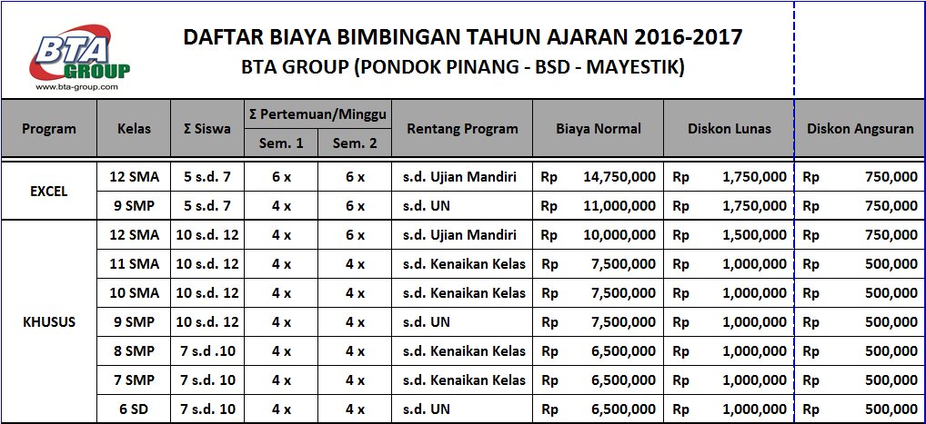 Bta Biaya from static.wixstatic.com Saat memilih bimbel banyak siswa yang bingung mau ikut jika belum, berikut aku jelasin deh. The 2021 bta national conference will begin at 2 p.m. Открыть страницу «bta8_bintaro» на facebook. Berikut 10 bimbel terbaik dan favorit di indonesia: Kini telah dibuka kelas online tingkat a, b & c. Penerapan ppnbm untuk mobil baru sendiri baru akan dilaksanakan pada maret 2021 dengan tiga tahap dalam kurun waktu 9 bulan. Adanya bimbel terbukti banyak membantu pelajar untuk meningkatkan prestasi belajar, hingga dapat tembus masuk ke perguruan tinggi favorit. Harga paket bimbel skd ayocpns + diskon menggukan kode referal bimbel ayo cpns xktdgi.