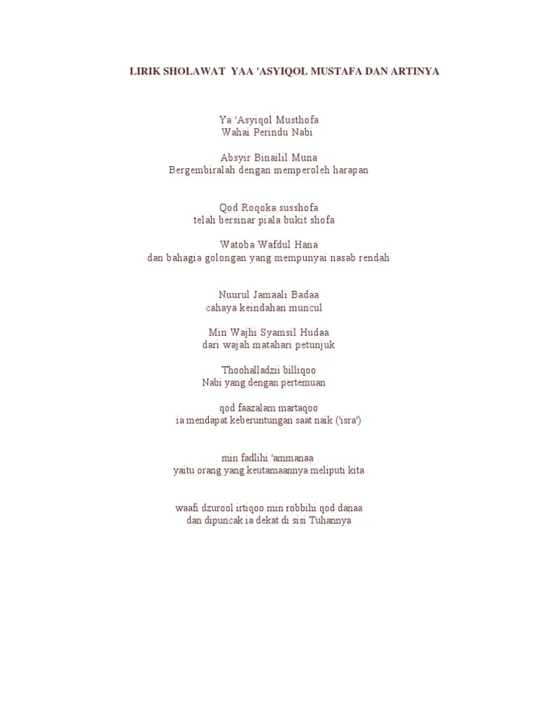 Ya Asyiqol Lirik Indonesia / Tuliskan Lirik Lagu Sholawat Ya Asyiqol Mustafa / Wahai perindu nabi absyir binailil muna.. Ya asyiqol musthofa absyir binailil muna qoq roqoka susshofa as shofa as shofaa watoba wafdul hana qod roqoka susshofa watoba wafdul hana. Daripada penasaran, langsung saja simak artikel berikut. Teks sholawat bahasa arab latin dan terjemahan serta doa terupdate. Wahai perindu nabi, bergembiralah dengan penuh harapan. Ya asyiqol musthofa adalah lagu yang di ambil dari salah satu .